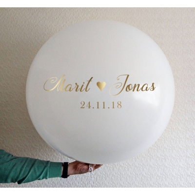 En stor latexballong (diameter opptil 1 m) med personalisert vinyltekst som klistres på ballongen.