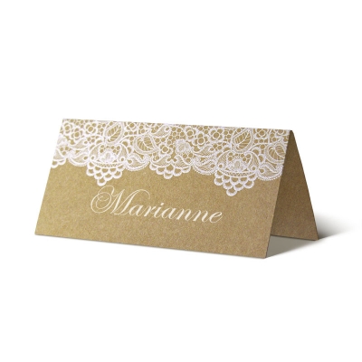 Flotte doble bordkort i naturbrun farge med delikate hvite blonder på. Pakken inneholder 10 blanke bordkort i størrelse 10 x 5 cm (brettet).