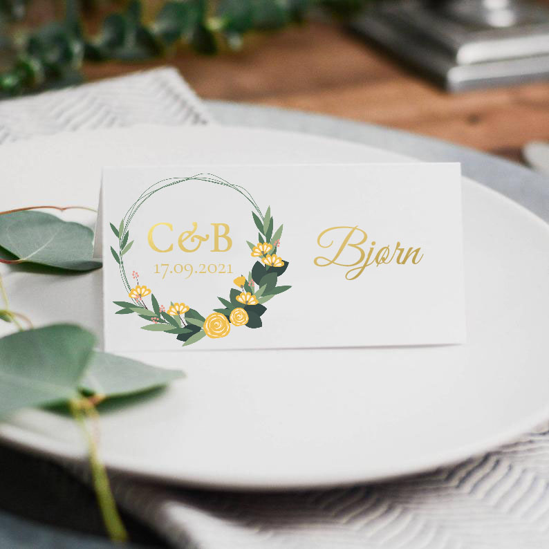 Bordkort "Yellow Flowers" med personalisering