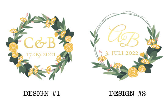 Bordkortene kan personaliseres med egen valgfri tekst som trykkes inni kransen.