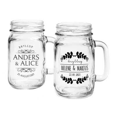 Vi tilbyr deg en unik mulighet til å bestille flotte personlige klistremerker til din store fest! Det er gjennomsiktige klistremerker som kan trykkes med eget navn, tekst, logo eller din egen design. Teksten kan trykkes i flere forskjellige farger inkludert metalltrykk. Disse klistremerkene kan f.eks. brukes på våre Glasskrus 12 cm som passer perfekt til bryllup, utdrikningslag eller jubileum. De kan klistres på alle glatte overflater - glass, plast, metall, osv. Fjern støv og partikler fra overflaten før klistremerket skal settes på.