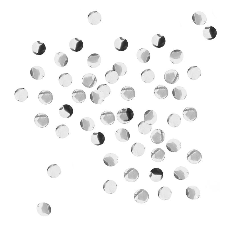 Konfetti i metallik sølvfarge er et flott pynt til et stilig festbord i samme tema. Konfetti er dobbelsidig og er 12 mm i diameter.